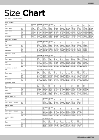 Size Chart SIZE CHART / TABELLA TAGLIE