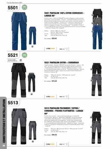 Matière: 100% coton 375 g/m2 Renforts: 100% Cordura®, polyamide Navy-56, gris-83, noir-99