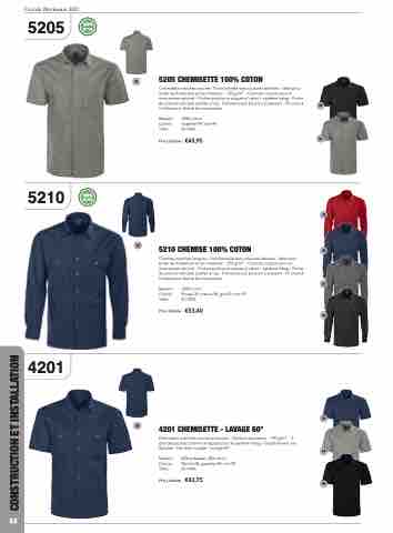 Chemisette manches courtes polycoton - Boutons à pression - 190 g/m2 - 2 grandes poches poitrine a/ espace pour le système Inbag - Empiècement aux épaules - Très bien coupée - Lavage 60°