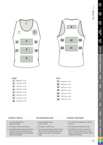 Possibilitéd’entrerdesnoms/numéros dans les les feuilles d’impression Envoi des des indications (taille/nom/numéro) lors de de de la confirmation du dessin 385