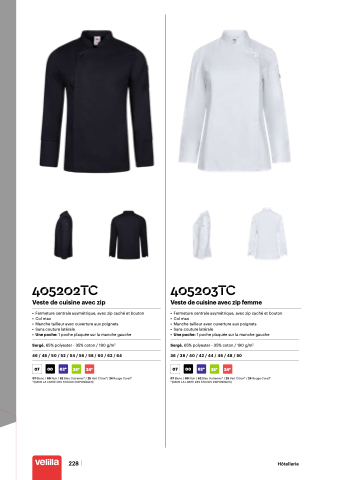 405202TC Veste de cuisine avec zip • Fermeture centrale asymétrique, avec zip caché et bouton